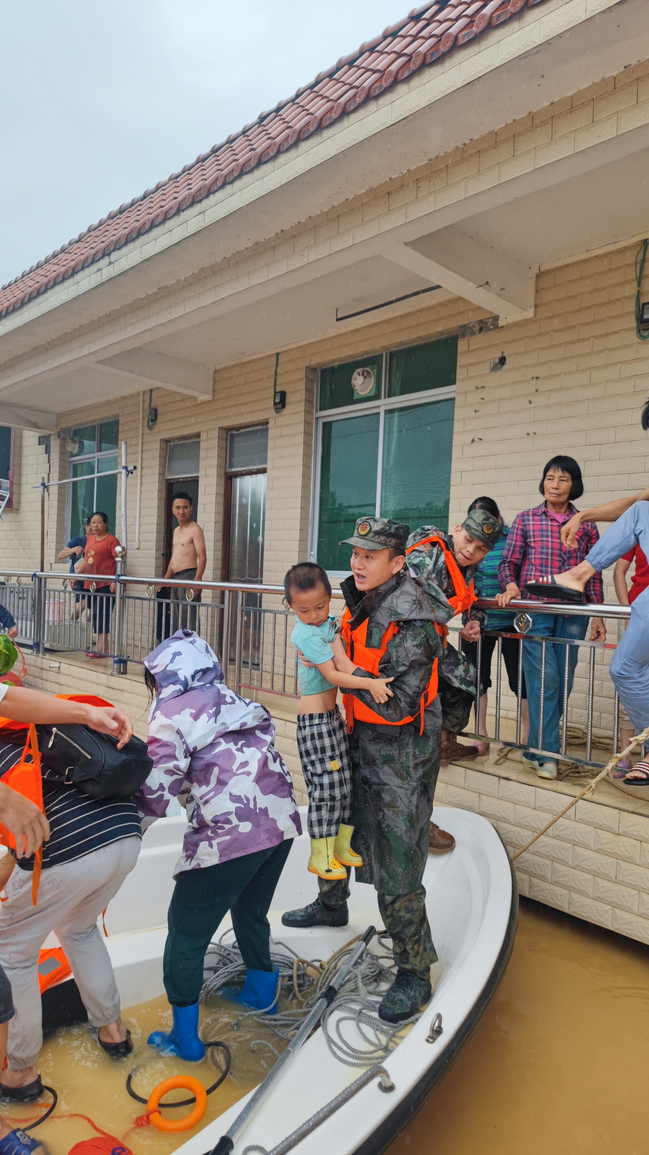 6月17日,中洲镇广聚木业公司宿舍楼二楼,七八十名被困群众在洪水中呼救。“岳山民兵连”四班长吴小庆驾驶冲锋舟抵达时,混乱的人群让救援难以开展。他纵身跃进阳台,用本地话大吼:“老人小孩先上船!”——这声指令与岳山造林时期“党员干部冲在前”的传统一脉相承。